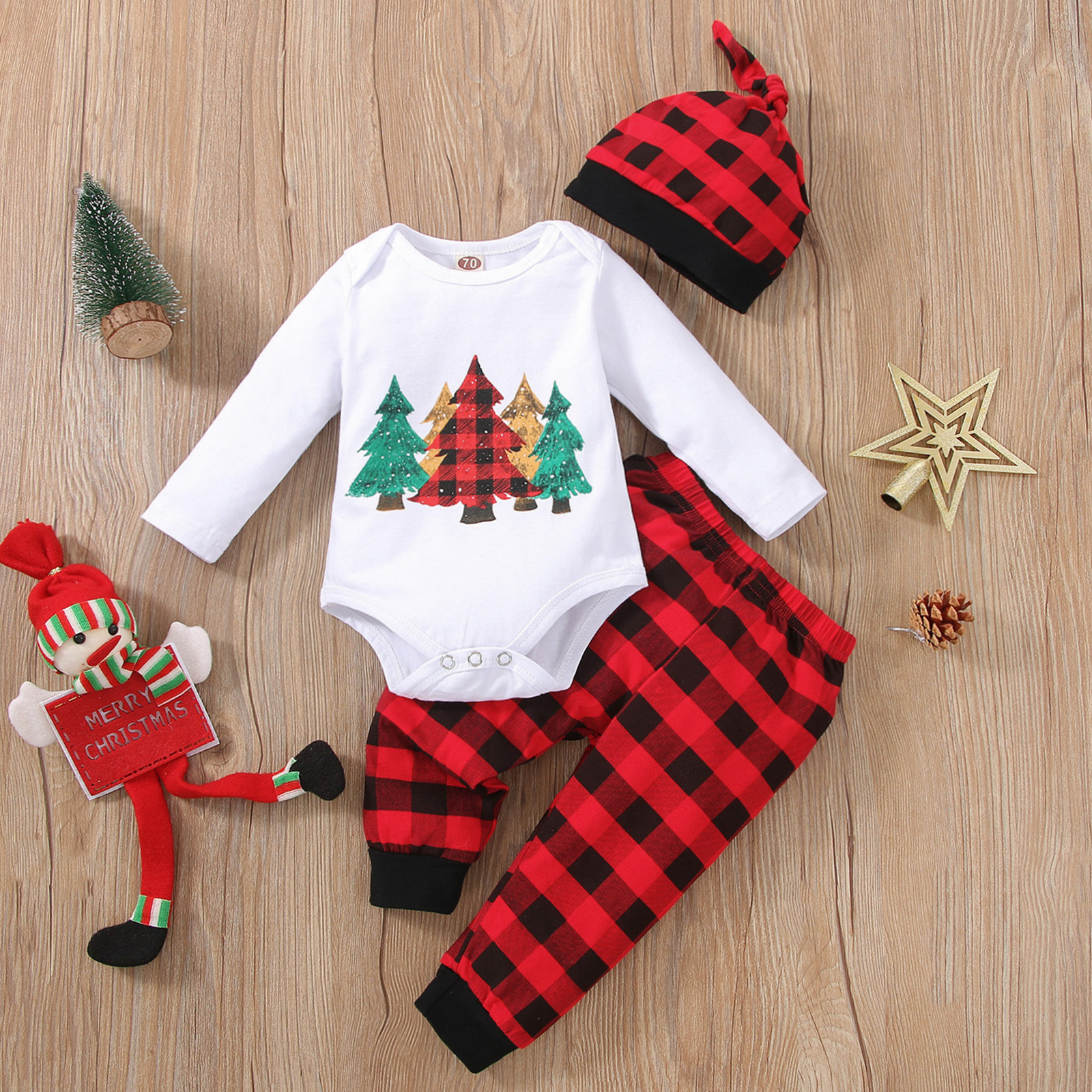 Available in sizes ranging from 70cm to 100cm, our Christmas Tree Checkered Pants Set is designed to fit your child perfectly. The pullover closure style makes dressing a breeze, ensuring that you can get your little one ready in no time.